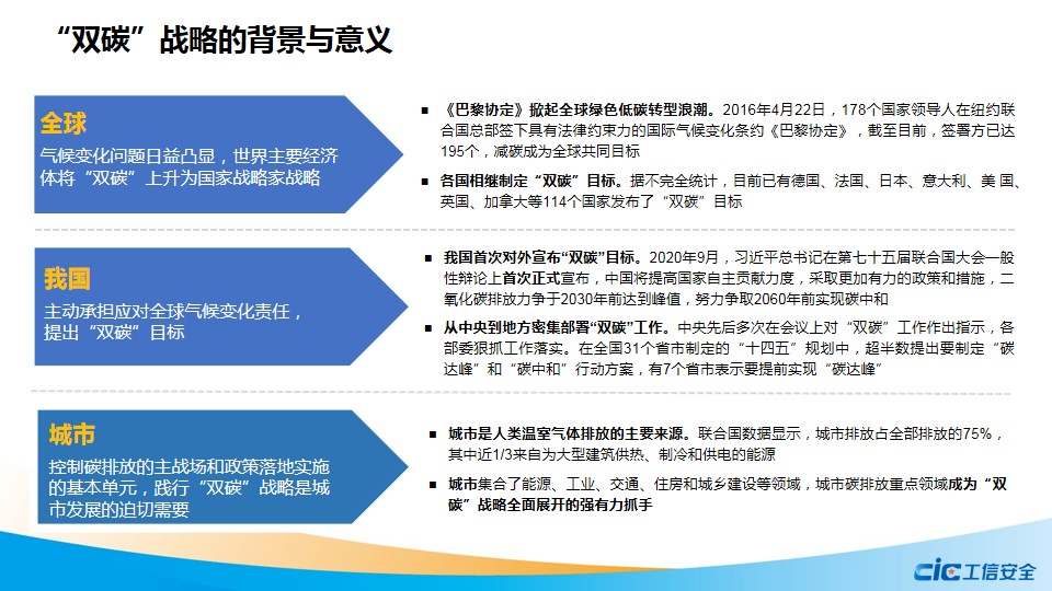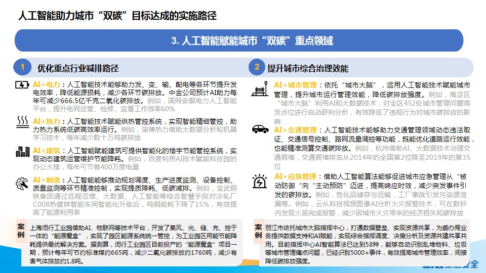 白皮书首先分析了我国“碳达峰、碳中和”目标提出的背景和意义,并指出城市是控制碳排放的主战场和政策落地实施的基本单元。人工智能作为引领新一轮科技革命和产业变革的战略性技术,正加快与经济社会各领域融合发展,逐渐成为助力城市“双碳”目标达成的重要手段。